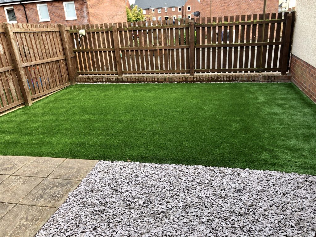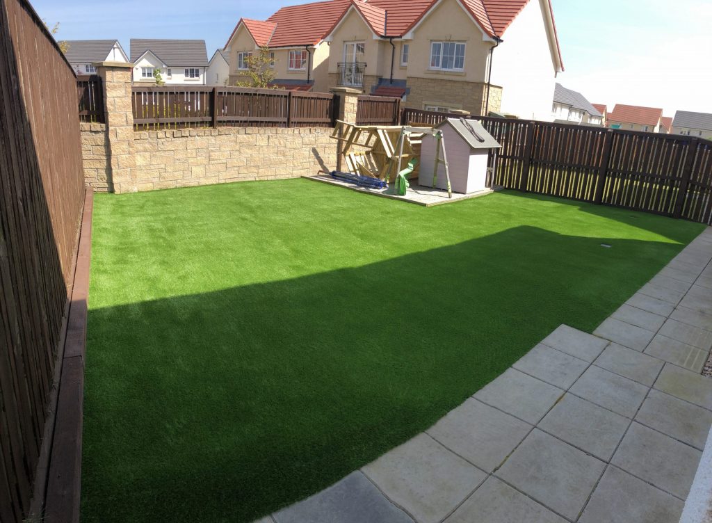 Here at CLS, we’ve helped many customers achieve their ideal outdoor space in back gardens across central Scotland. We usually replace existing real grass lawns, chipped areas or decking, which can often be much harder to maintain.